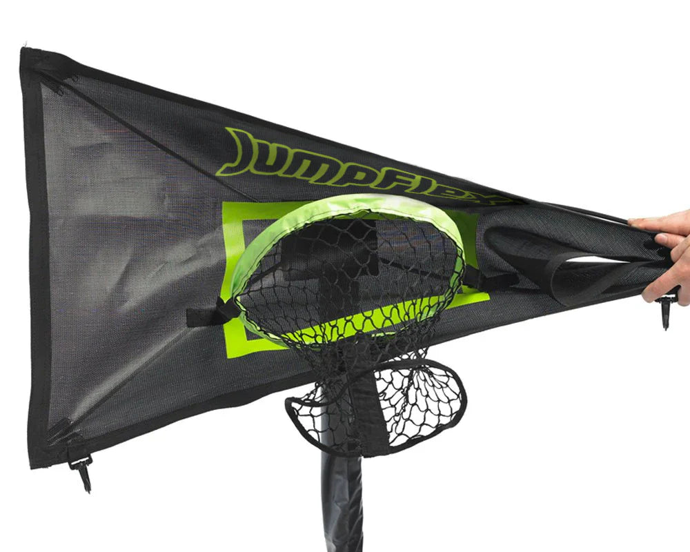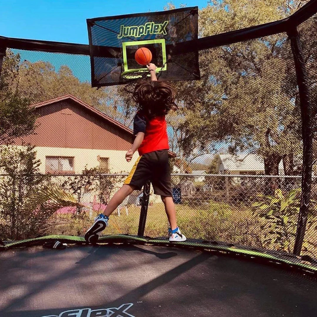 Kids will love practicing their slam dunks, dribbling and jumpshots on their Jumpflex trampoline. With a soft backboard, there will be plenty of rebound action too!